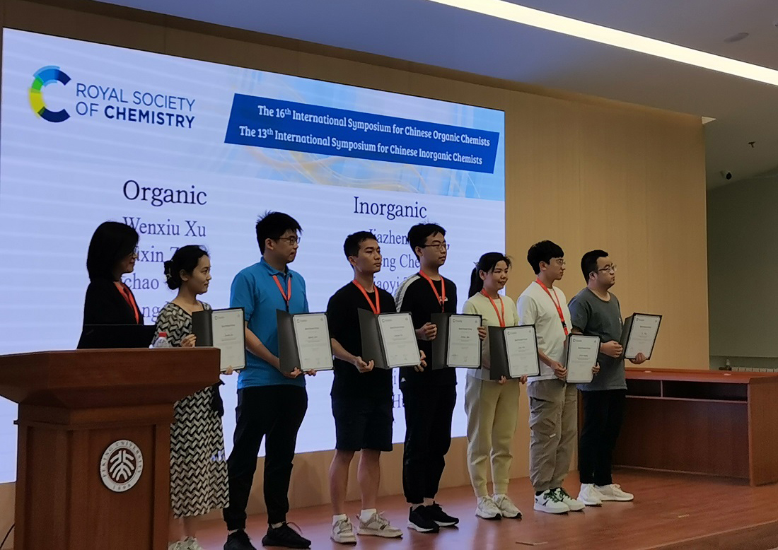 研究室成员参加华人无机有机化学会 时间:2023-08-31 来源:作者: 字体: 【小】 【中】 【大】 8月27日至8月30日,华人无机有机化学会(ISCOC-16 & ISCIC-13)在北京大学化学学院举办。研究室成员积极参加报告、墙报展讲和志愿服务活动。陈武丰博士、刘威博士、皇甫鑫磊和黄大江等同学荣获优秀墙报奖。