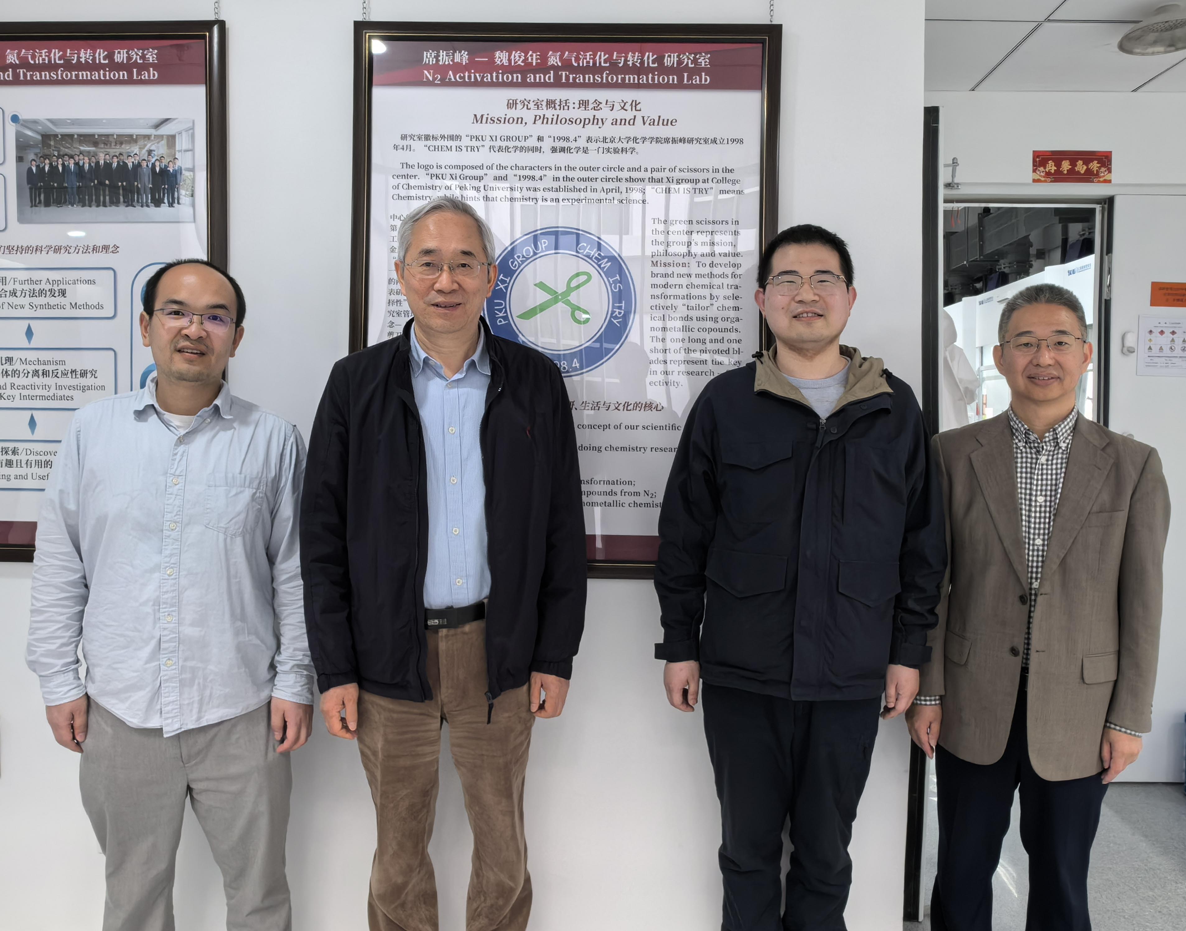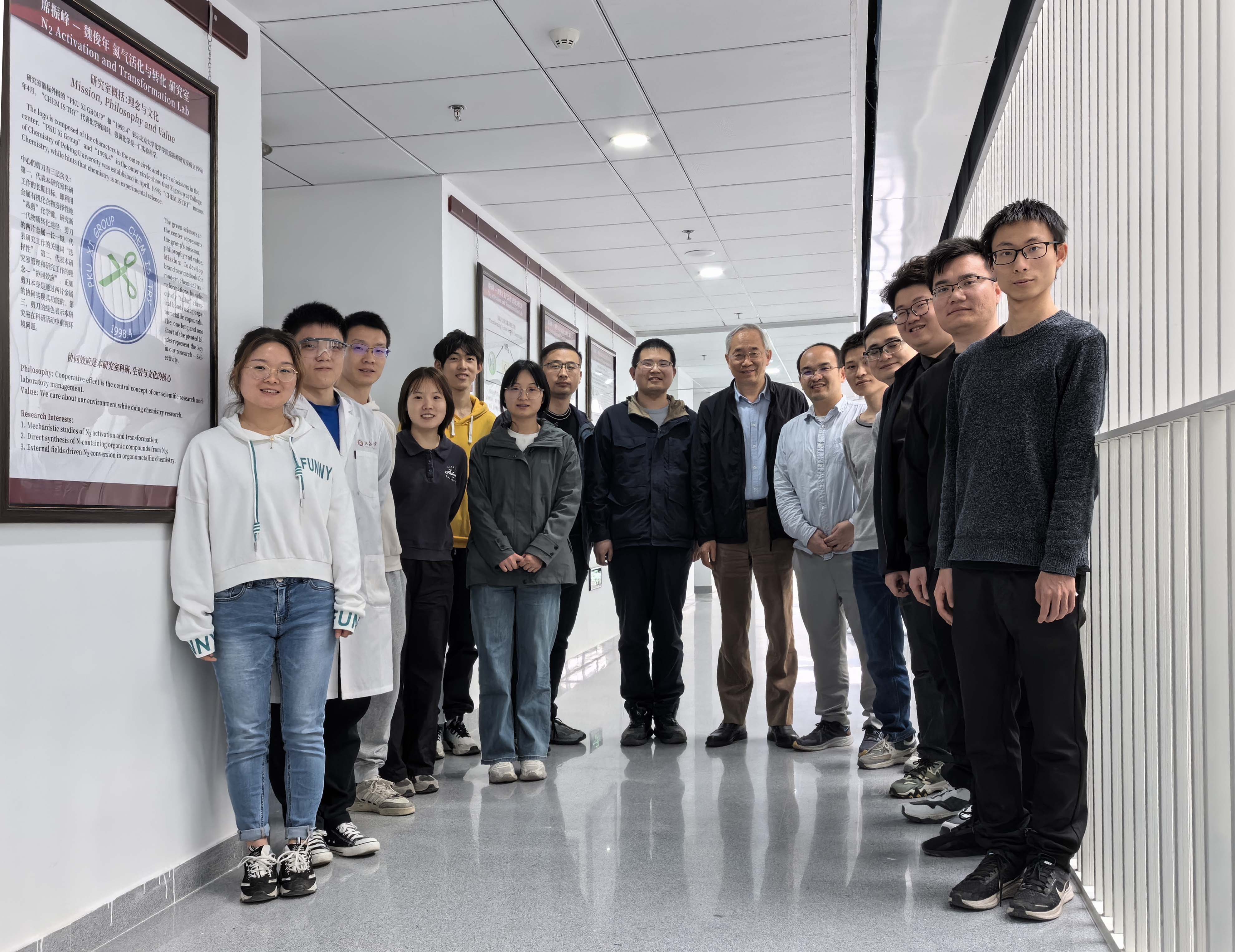 热烈欢迎徐凌博士回组访问! 时间:2024-04-10 来源:作者: 字体: 【小】 【中】 【大】 4 月 8 日下午,徐凌博士回到我们的研究室看望了老师们和师弟师妹们。徐博士是席老师和张老师 2010 级的博士研究生,他在博士生期间专注于稀土金属有机化学和白磷化学的研究,在这两个领域内做出了许多杰出的探索性工作。2015 年博士毕业后他前往北京大学高松老师课题组进行博士后研究。2016 年加入湖南师范大学化学化工学院任副教授。当天下午,徐博士在张老师的带领下参观了稀土化学研究室和固氮化学研究室,他和老师们以及师弟师妹们亲切交流并合影,留下了温暖的回忆!