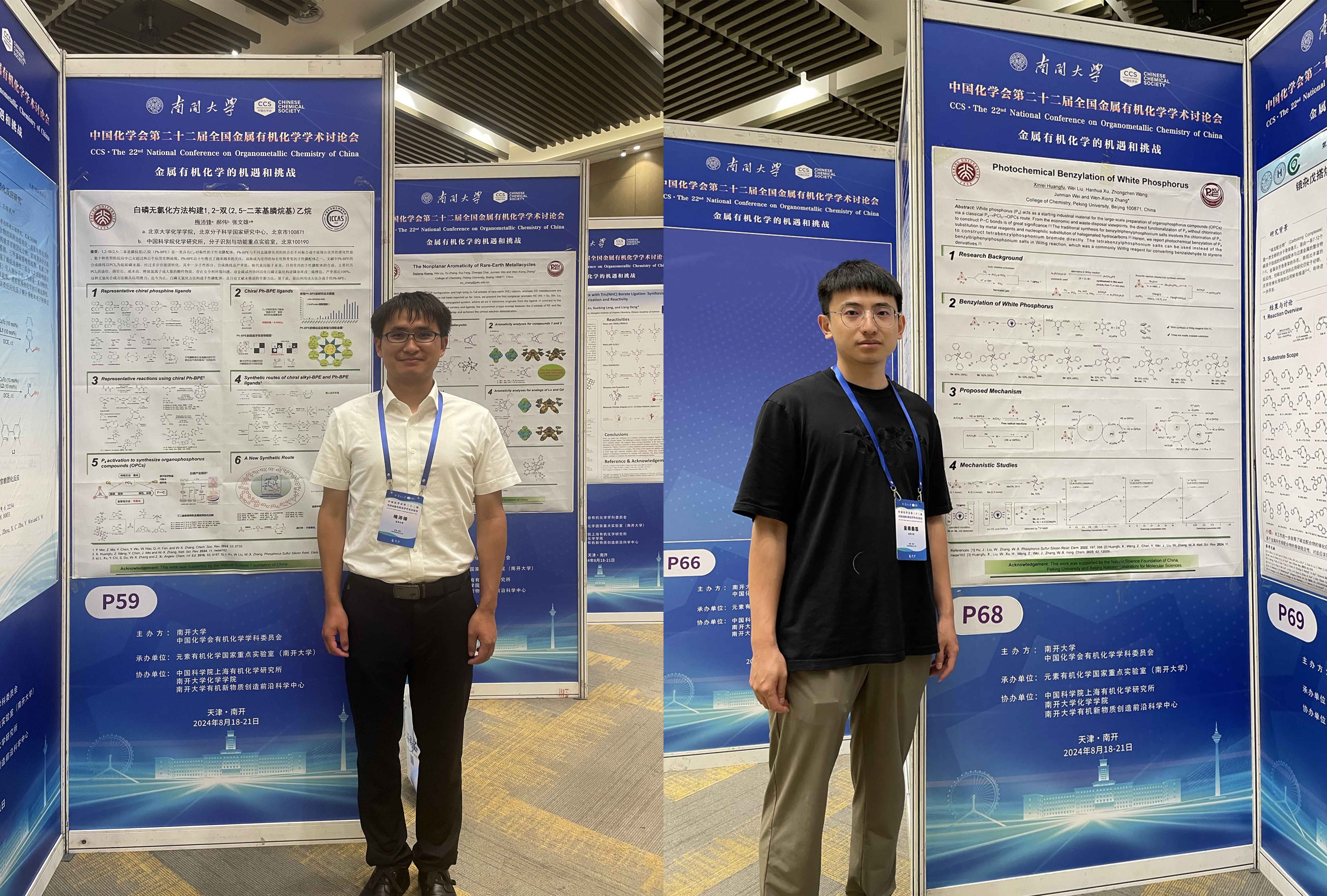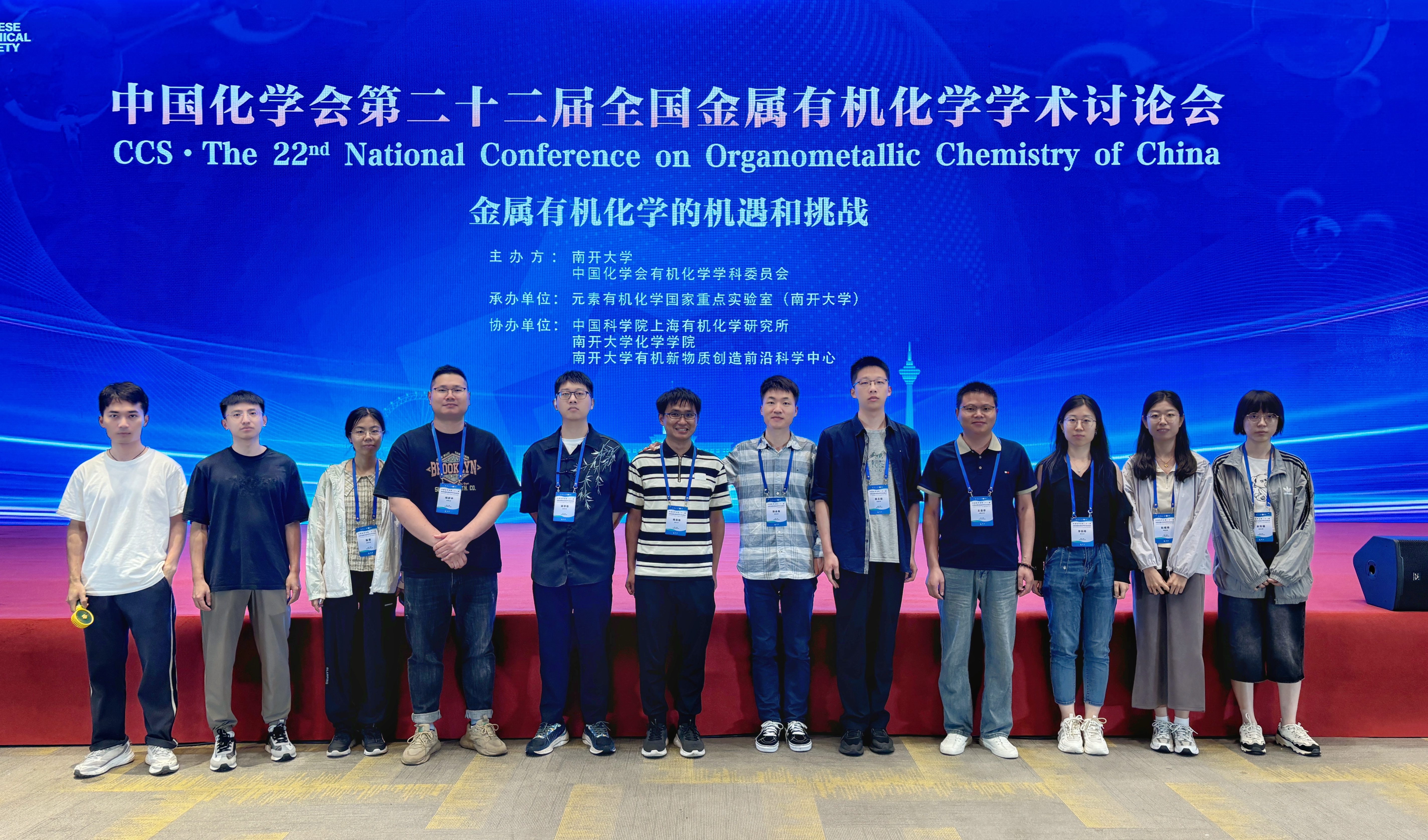 研究室成员参加第二十二届全国金属有机化学学术讨论会 时间:2024-08-27 来源:作者: 字体: 【小】 【中】 【大】 8月18日至8月21日,研究室全体成员赴天津市参加中国化学会第二十二届全国金属有机化学学术讨论会,与全国金属有机化学界的同行们进行学术交流。研究室成员分别围绕各自工作进行了墙报展讲,内容涵盖稀土金属有机化学和白磷活化等领域。研究室的黄大江同学获得本次会议的优秀墙报奖。通过与专家同行的交流沟通,大家广泛了解了相关科研领域动态,为接下来的科研工作指明方向。