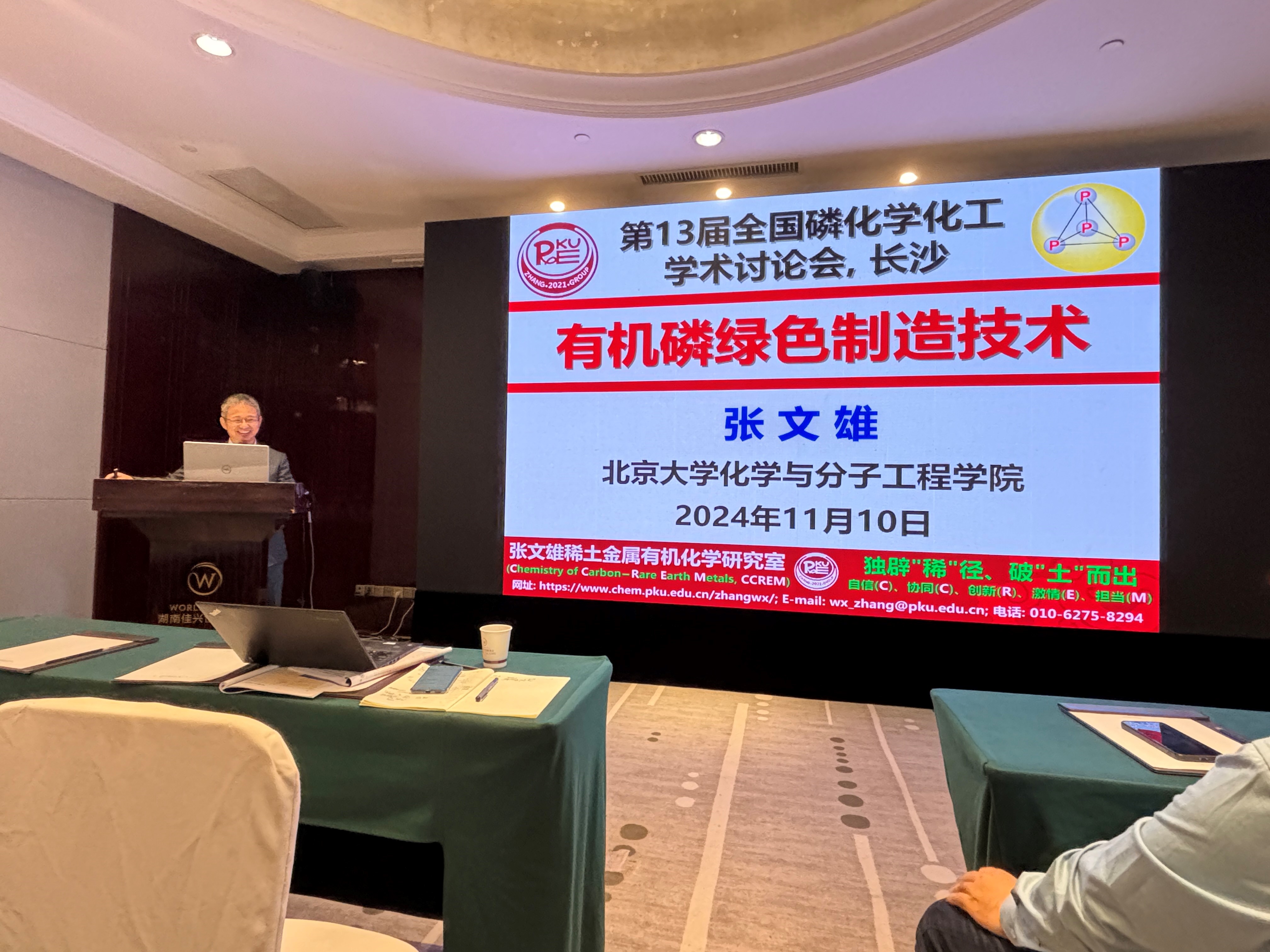 2024年11月8日至10日,中国化学会第十三届全国磷化学化工学术讨论会在湖南长沙举办。张文雄教授带领研究室白磷研究小组的四名成员参会,与研究磷化学的同行们进行学术交流,并在会上作了“有机磷绿色制造技术”的学术报告。