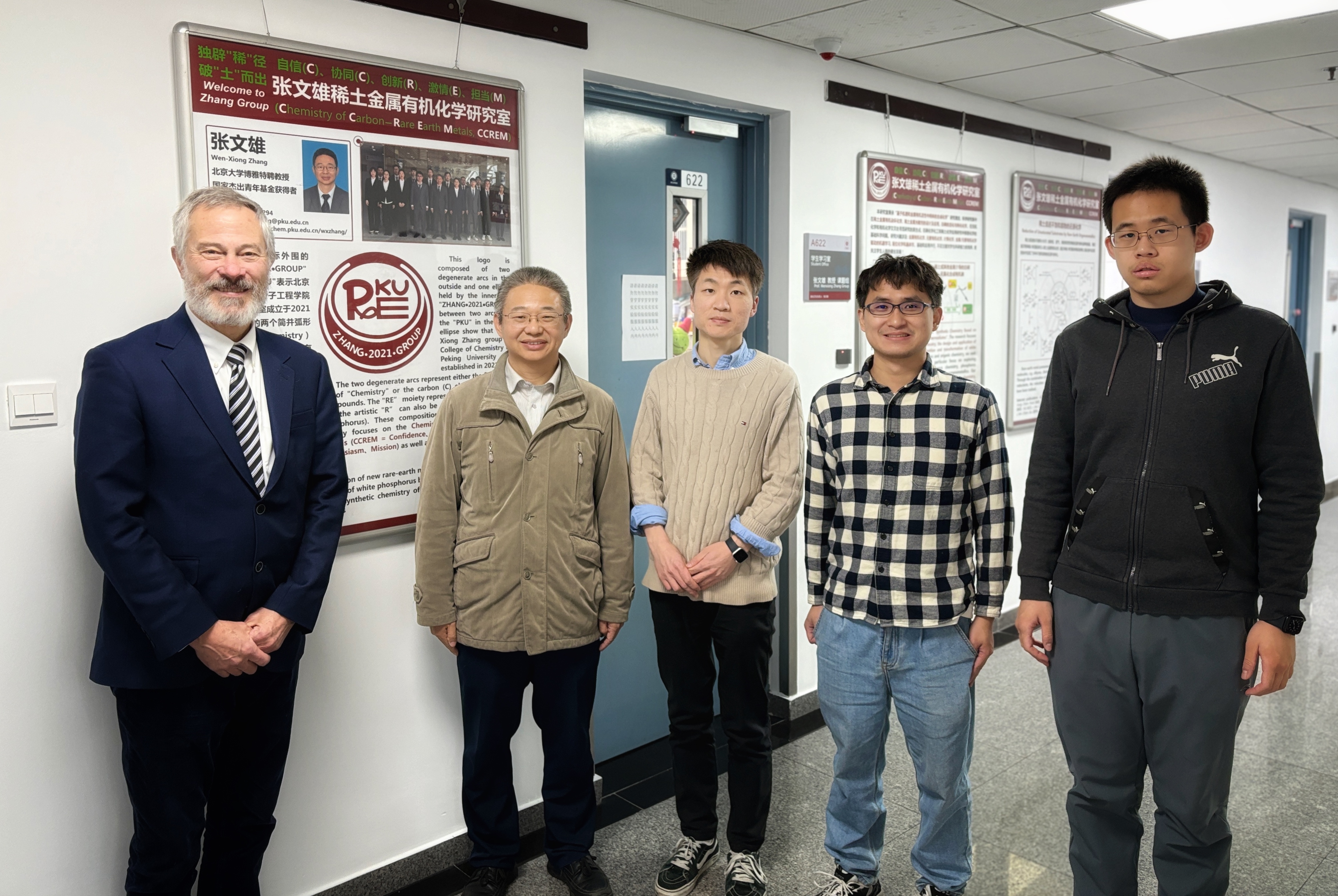 热烈欢迎Gray教授来组访问! 时间:2025-01-18 来源:作者: 字体: 【小】 【中】 【大】 1月14号,美国耶鲁大学Gray教授来到北大化院进行学术交流,期间他在张老师带领下参观了实验室及展板,并与同学们合影留念。Gray教授目前任职于耶鲁大学化学系,他长期致力于开发高效利用太阳能生产可再生燃料的方法。感谢Gray教授的来访!